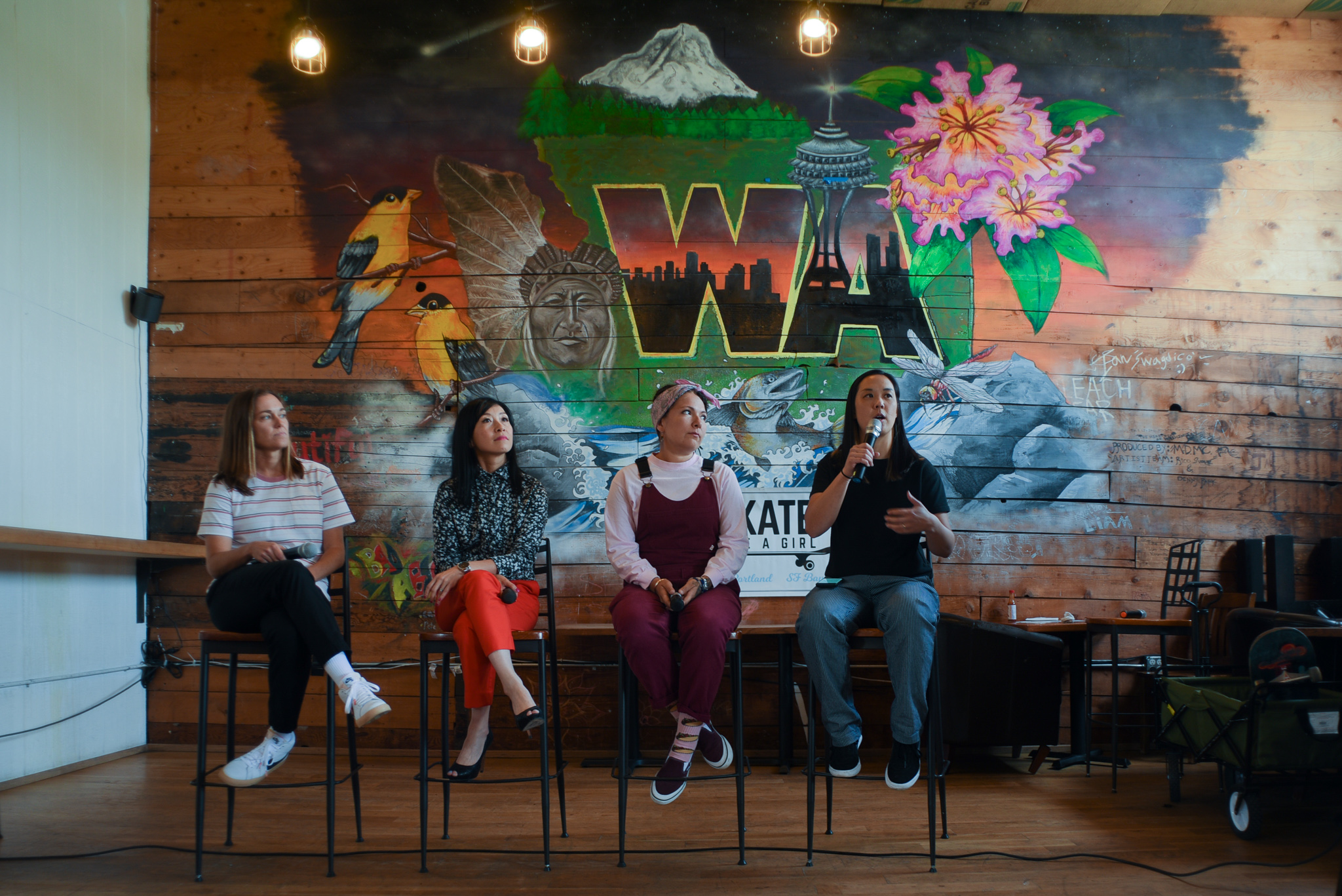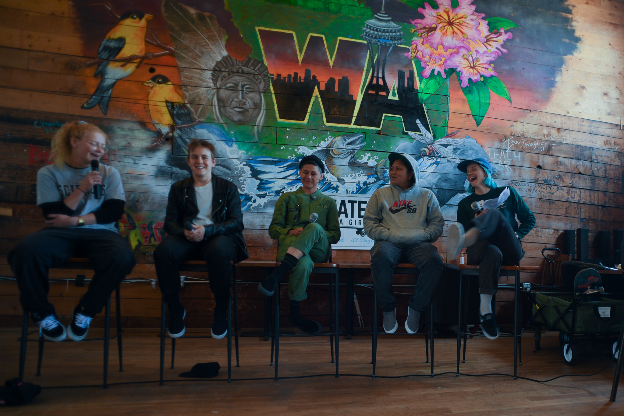 “May 3-5th, 2019 marked Skate Like a Girl’s 10th Annual Wheels of Fortune (WOF) weekend in Seattle, Washington. Hundreds of women and trans skaters flocked to the Emerald City to participate in back to back weekend activities, representing from Mexico, Canada, Sweden, Korea, Australia, Japan, and all across the USA! The 2019 WOF itinerary boasted the Nike SB “Coffee and Conversations” panel discussions, an evening Welcome Party at Bad Jimmy’s Brewing, the Witch Hunt presented by the Skate Witches, Punk Rock Karaoke at 35th North, and Sunday Competition at All Together Skate Park. In total, more than 100 sponsors donated prizes, 150 skaters competed, and 55 volunteers gave their time and energy to make it happen. See you next year for our 11th annual event May 1-3rd, 2020!” –Skate Like A Girl